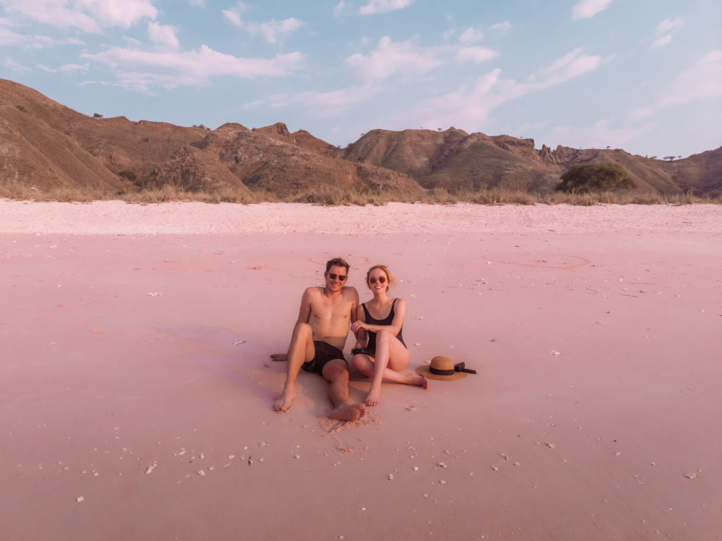 For our next stop we made our way around the bay by boat to Pink Beach. As the name suggests, this is an idyllic oasis featuring pink sand, turquoise water and to our surprise, no other people! This beach is isolated so the only way to reach it is by boat from Labuan Bajo. Most of the day tours arrive earlier in the day so when we arrived in the hour before sunset, we had the beach entirely to ourselves. This was the perfect time of day to take stock and reminisce over our Indonesia adventures so far. We both agreed that this day (Padar Island and Pink Beach) was our favourite from the trip.