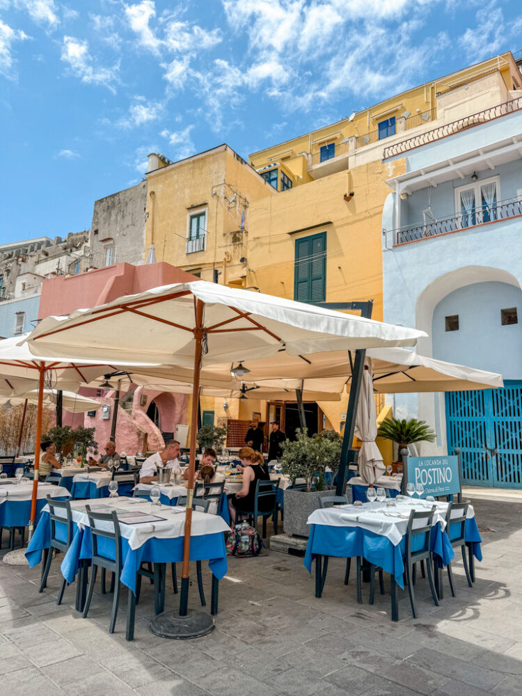 Once the restaurants began to open up, I could totally see why everyone is beyond obsessed with this idyllic little port. It’s just so adorable and picturesque! Truly the icon of Procida, and it’s oh so colorful (which I just love).