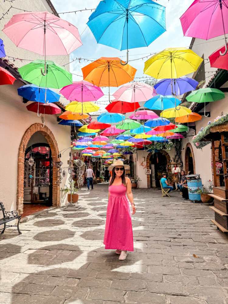 - Go shopping at Plaza de Artesanías: A small square with a handful of shops to buy local Mexican crafts. I found some super cute keychains here, and loved taking photos of the popular umbrellas hanging overhead.