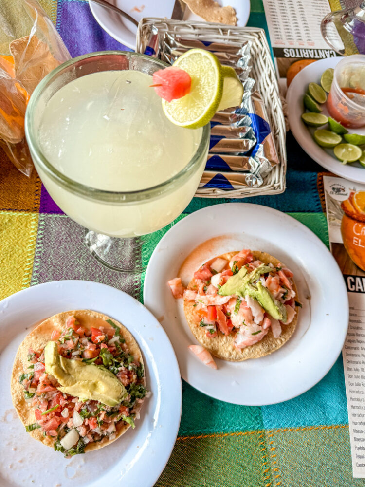 We sat upstairs with a lovely view of Chapala Lake, and loved the light breeze. The menu had so much to choose from (it was actually a bit overwhelming), with a big emphasis on seafood (which makes sense considering it’s a seafood restaurant, haha). Lots of shrimp, ceviches, octopus (my favorite!), and shellfish platters.