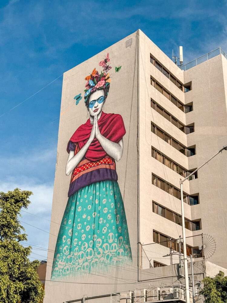 One of the first things I stumbled upon was the massive Frida Kahlo mural, known as Magdalena. Painted by Irish artist Fin DAC, this 150-foot-tall piece is an absolute showstopper and a powerful tribute to Frida’s spirit and style. You really can’t miss it – literally and figuratively (it’s HUGE).