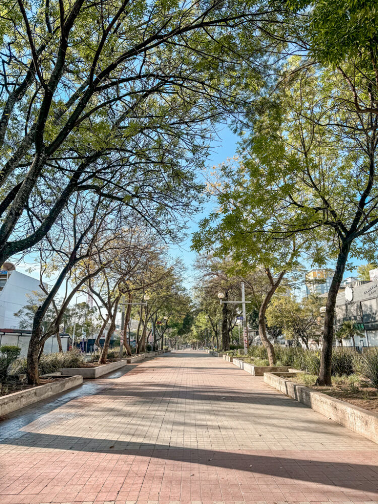 After a full day exploring downtown, I headed to the Chapultepec area in Colonia Americana – easily one of the coolest neighborhoods in Guadalajara. The wide, tree-lined boulevard is buzzing with energy, especially in the evening when locals gather at cafés, bars, and taco joints. Plus, I was staying nearby so I definitely wanted to explore my neighborhood.