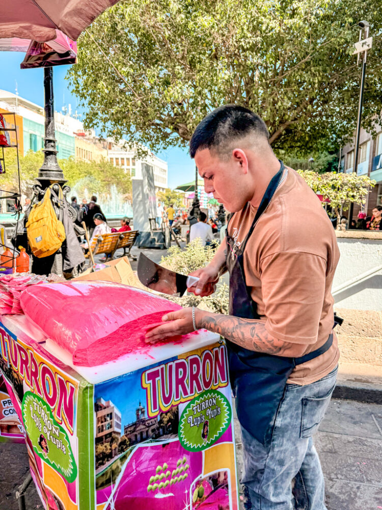 First was Mercado San Juan de Dios, the largest indoor market in Latin America – a total sensory overload in the best way. We wandered through its maze of stalls, sampling local fruits (some I’d never even seen before!), and eyeing all kinds of snacks, souvenirs, leather goods, and more. FYI – you’ll want cash for the market. I even got to try chapulines (fried grasshoppers) and they were better than I’d imagined (kinda tasted like powdery lime crackers to me). Although I’m not so sure I’d choose to willingly snack on them, haha.