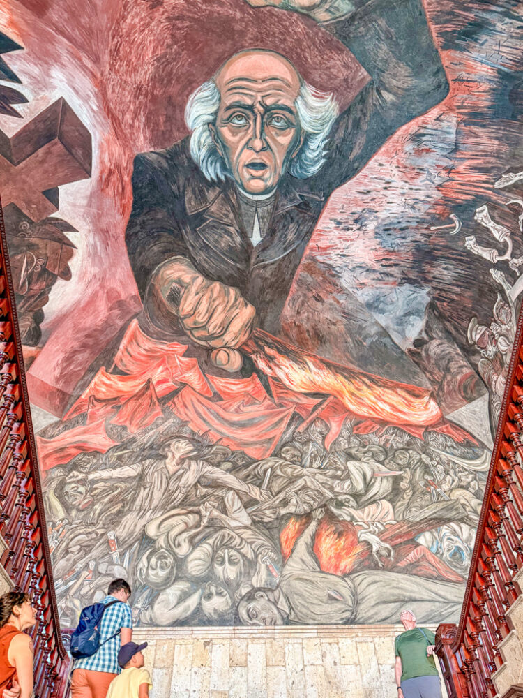One of my favorite stops was Palacio Municipal de Guadalajara, which I hadn’t even heard of before the tour. Inside, we found a jaw-dropping mural by José Clemente Orozco that spans the grand staircase – bold, expressive, and so powerful in person.