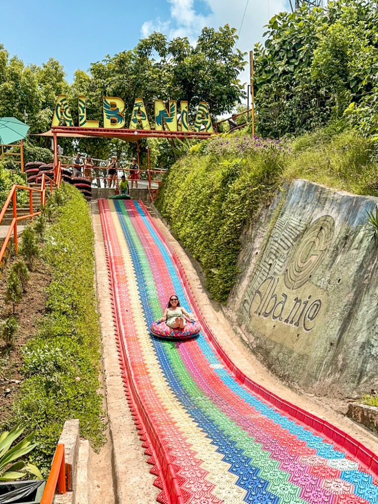 We also stopped at Café Albania, one of the most instagrammable spots on the route, and I couldn’t resist trying their famous rainbow slide – yes, it’s as exhilarating as it looks. It’s pretty touristy and expensive ($10 for one ride), but I couldn’t not do it since I was right there! To be honest, I wouldn’t go all the way to the Ruta de Los Flores just for the rainbow slide, but I’m glad I got to go!