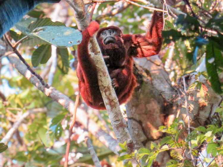 We set out in the rainforest hoping to see some primates, and sure enough, we spotted a troop of red howler monkeys hanging out in the canopy. It took us a long while, and we almost didn’t see any at all. But at the last moment, we spotted quite a few and had an exciting time watching them jump around. You’ll want a super long zoom in order to capture them; the ones we saw were high in the treetops. Thankfully my friend managed to get a few shots, although they’re not the clearest, haha.