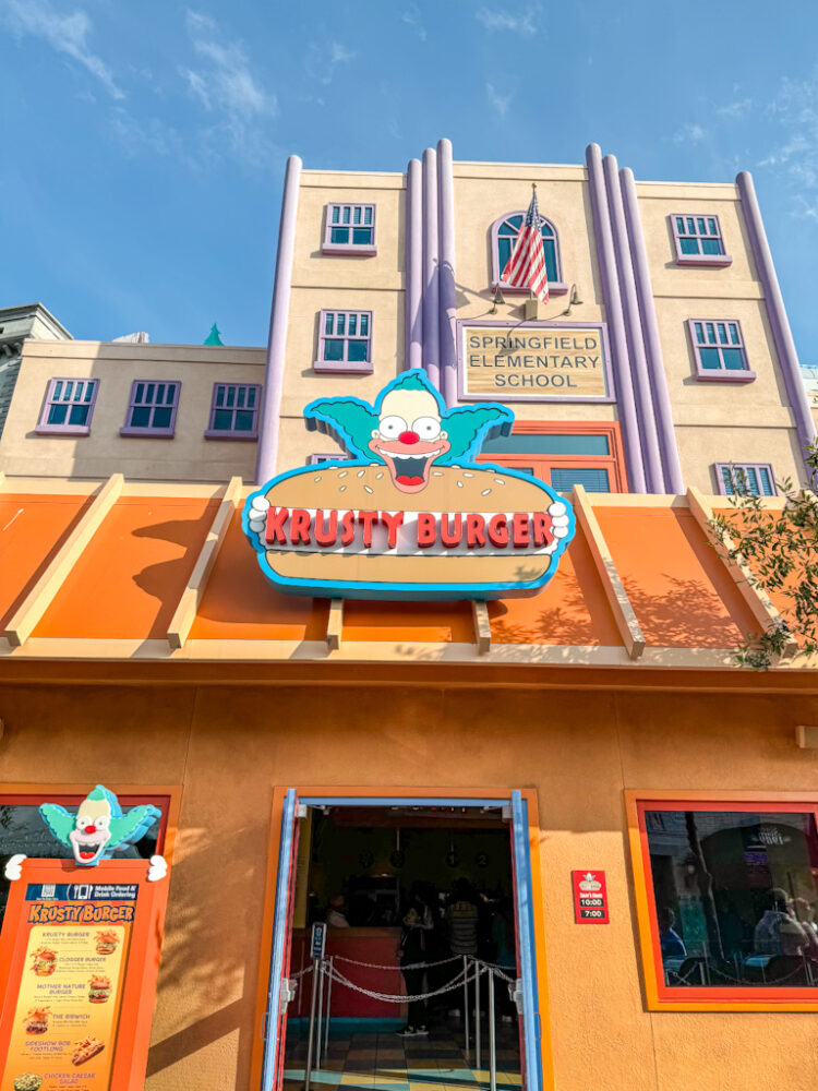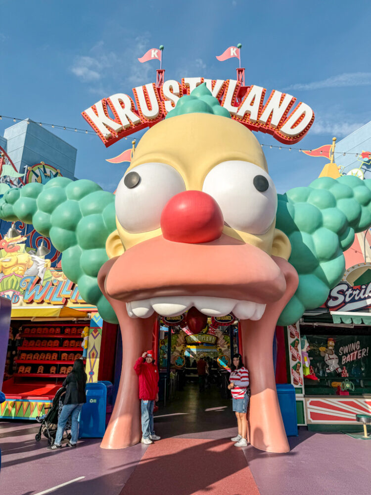 So, so colorful, and so, so fun! Especially with a giant pink donut in hand! I was floored by how meticulously themed Springfield was. The whole area really recreates the look and feel of the fictional town from The Simpsons. From the colorful buildings to the humorous signage and themed props, it really captures the charm and humor from the long-lasting TV show (with over 30 seasons, wow!).