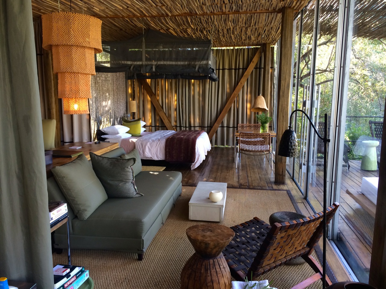 When I stepped off the 6 flights journey to Sandibe lodge in the Okavango Delta I would have been happy to rest my head on a pillow let alone the lush linens inside the spacious villa that awaited my arrival at And Beyond. This lodge is popularly regarded as one of the most unique luxury lodges in the continent, with a natural interior design focus to blend in to and compliment its’ surrounds. Check out this this post for a full look inside the lodge or watch the video to step inside a Botswana safari.