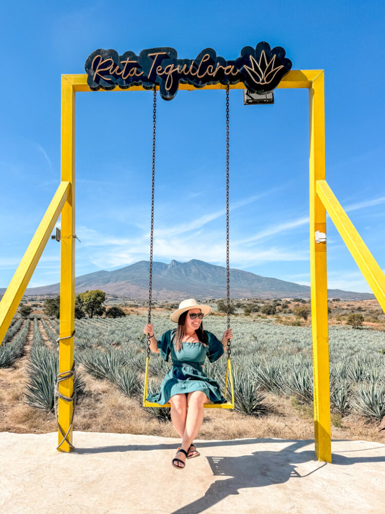 The scenery was unreal – bright green agave set against a deep blue sky, with mountains in the distance. Truly one of those “wow, I’m really here” kind of travel moments. I loved the little farm we stopped at; the entire setup was so charming and photogenic and the swing overlooking the agave fields was so fun!
