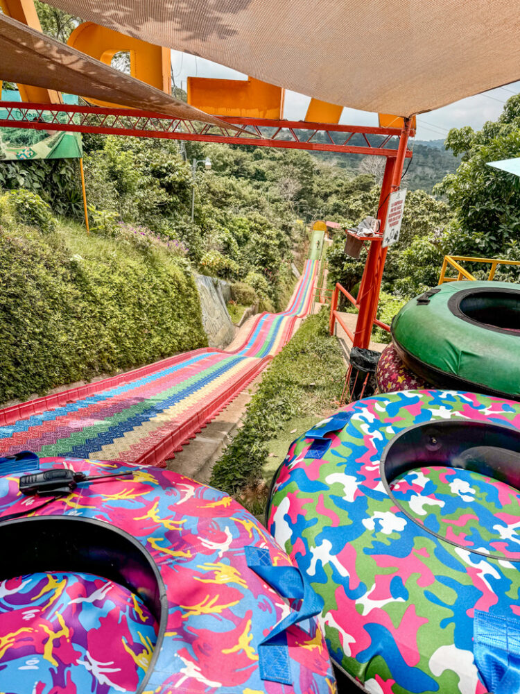 We also stopped at Café Albania, one of the most instagrammable spots on the route, and I couldn’t resist trying their famous rainbow slide – yes, it’s as exhilarating as it looks. It’s pretty touristy and expensive ($10 for one ride), but I couldn’t not do it since I was right there! To be honest, I wouldn’t go all the way to the Ruta de Los Flores just for the rainbow slide, but I’m glad I got to go!
